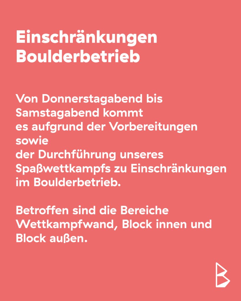 • Nur eine Person pro Boulder
